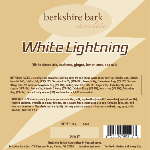 White Chocolate, Roasted Cashews, Crystalized Ginger, Fresh Lemon Zest, Sea Salt